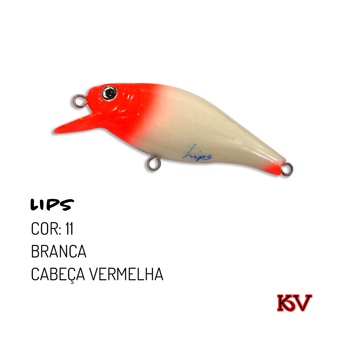 Isca Artificial Lips – KV – Cor 11 – Branca/Cabeça Vermelha